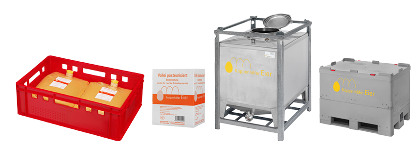 Vollei flüssig pasteurisiertGebinde: 10 Liter Beutel, 200 Liter Container, 500 Liter Container, 1000 Liter Container